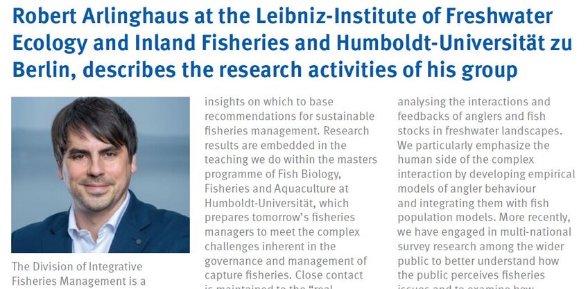 Prof. Dr. Robert Arlinghaus presents the IFishMan lab within the latest FSBI Summer News
