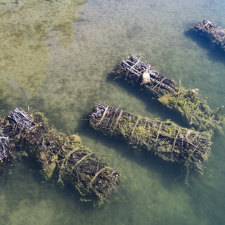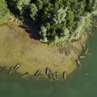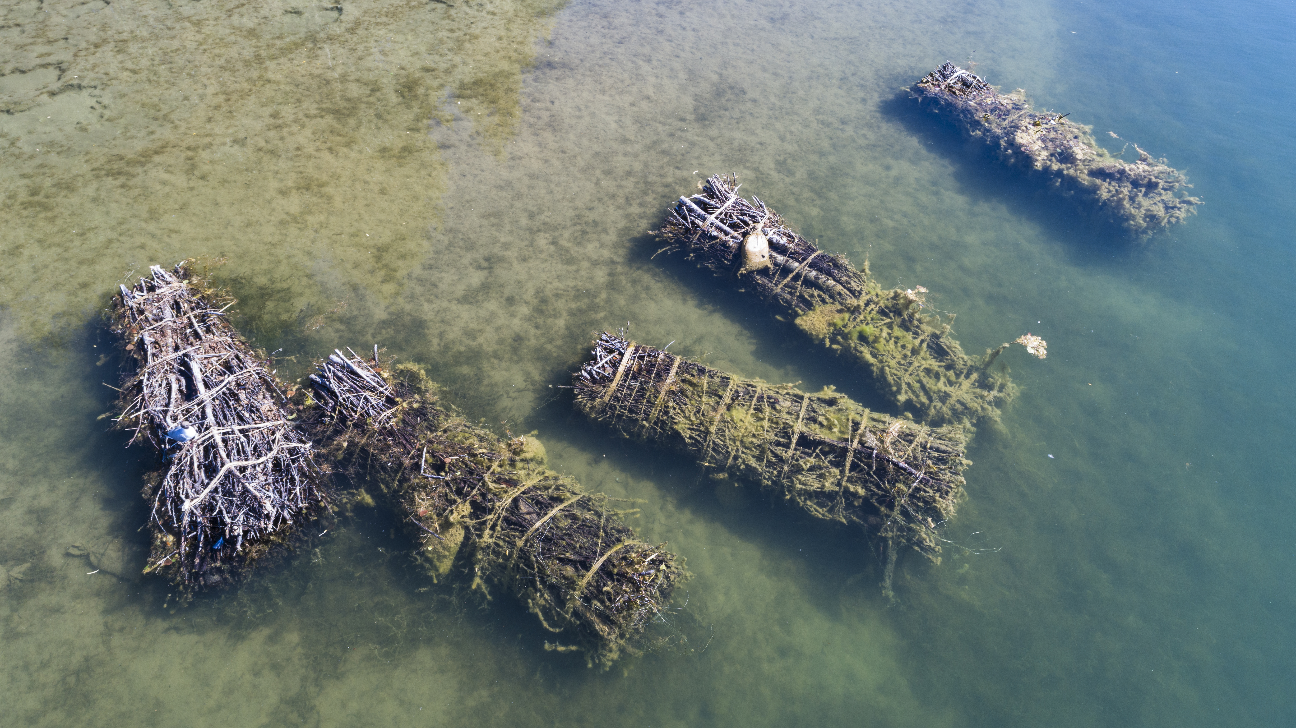 Flachwasserzone und eingebrachtes Totholz am Linner See