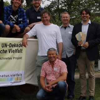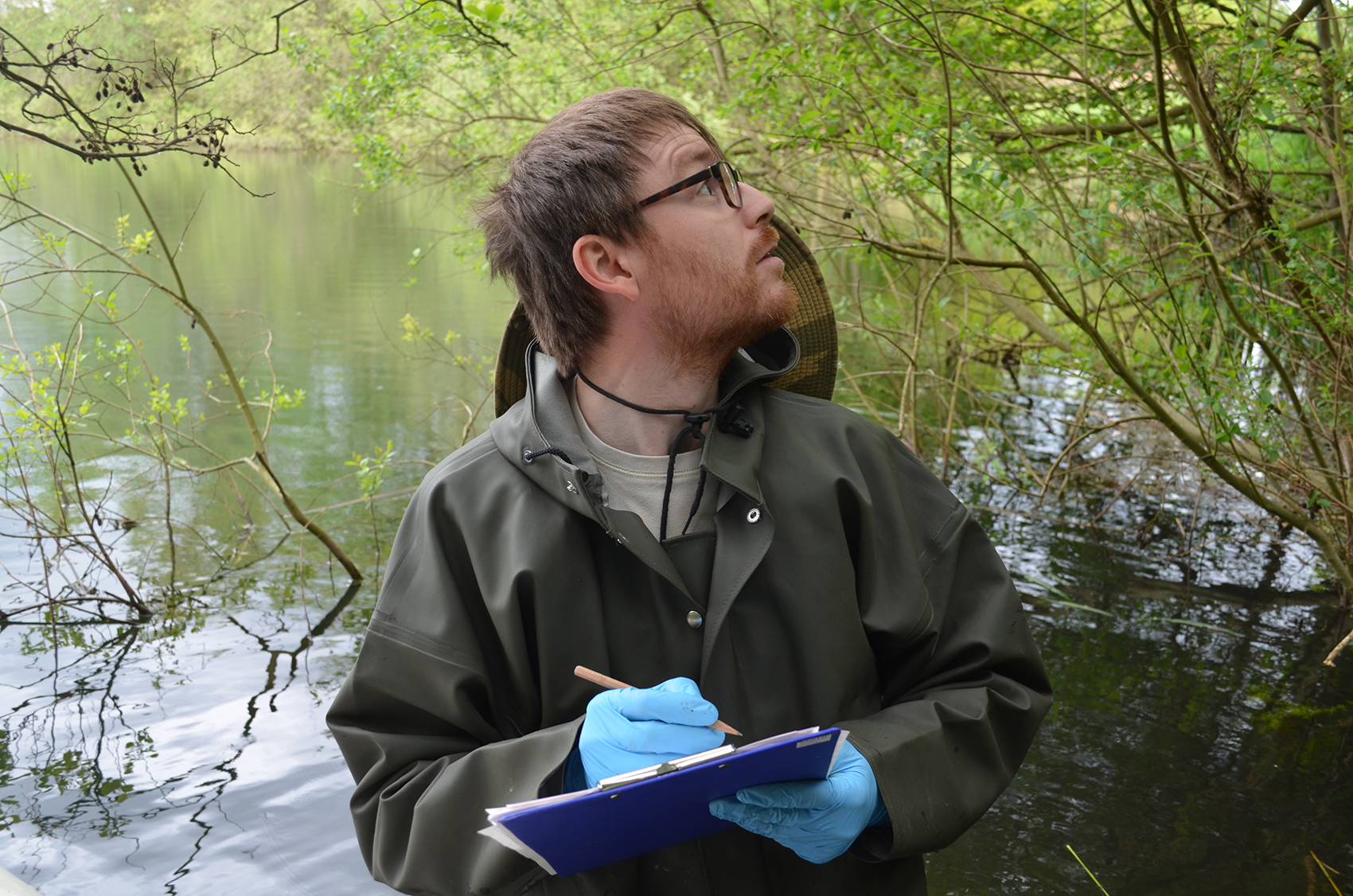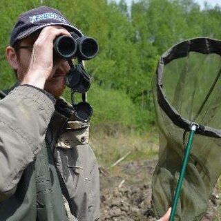 Robert Nikolaus auf friedlicher Artenjagd: mit Fernglas und Kescher.