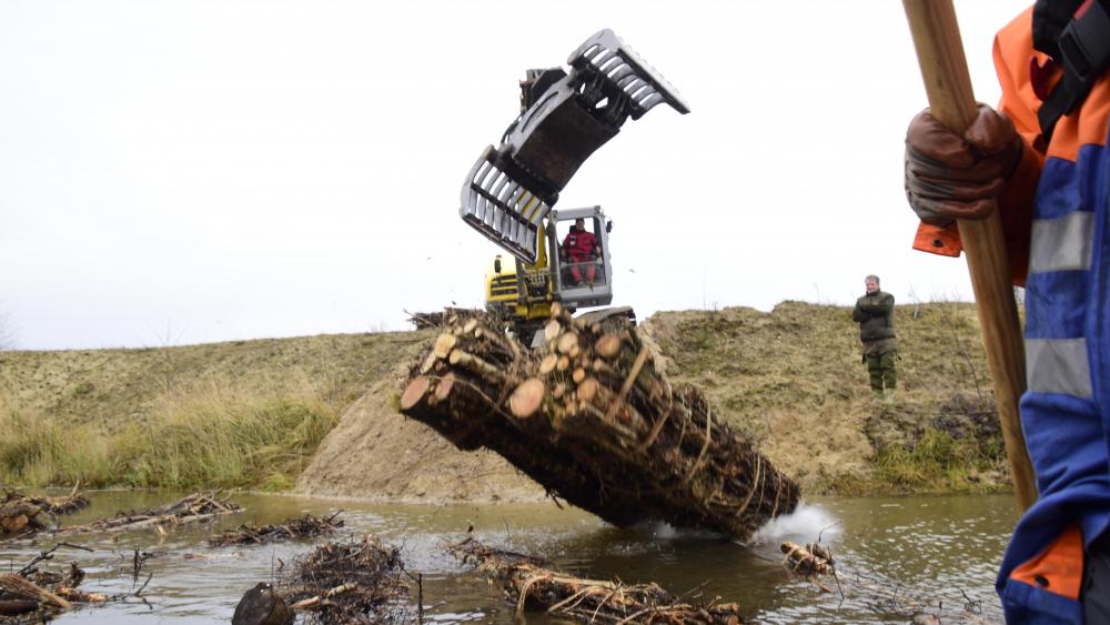 Eingebrachtes Totholz im Uferbereich in einem der Versuchsgewässer