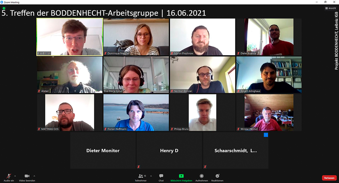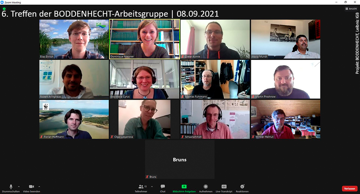 Über die viereinhalbjährige Projektlaufzeit traf sich die Arbeitsgruppe in regelmäßigen Abständen mehrmals pro Jahr. Die Arbeit wurde von Prof. Dr. Alistair Bath von der Memorial Universität in Neufundland (Kanada) als neutraler Moderator begleitet und das Team von BODDENHECHT organisierte die Arbeitsgruppentreffen und stellte wesentliche Daten und Fakten rund um die Boddenhechte bereit.