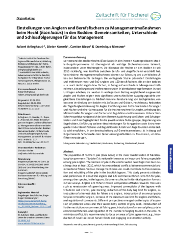 Roser, P., Radinger, J., Feldhege, F., Braun, M., Arlinghaus, R.