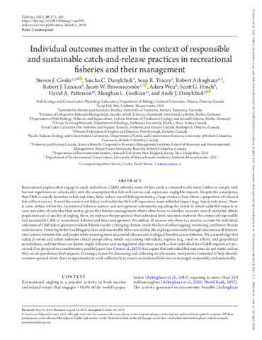 Individual outcomes matter in the context of responsible and sustainable catch-and-release practices in recreational fisheries and their management