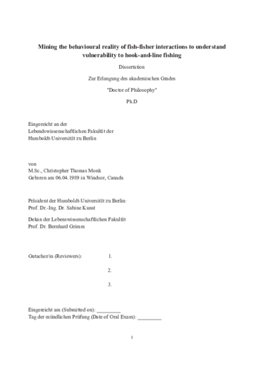 Monk, C. T. (2018). Mining the behavioural reality of fish-fisher interactions to understand vulnerability to hook-and-line fishing. Dissertation, Humboldt-Universität zu Berlin