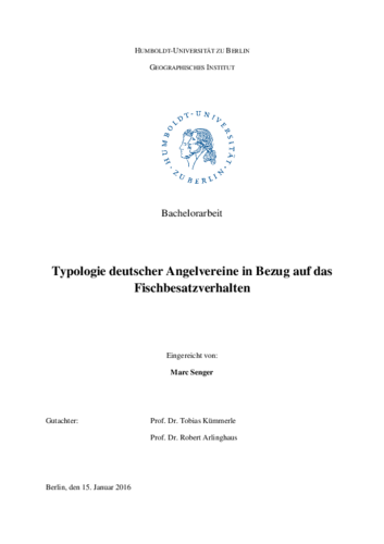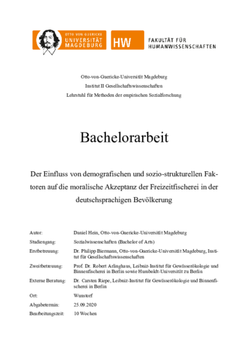 : Bachelor Thesis, Gottfried Wilhelm Leibniz Universität Hannover / Anglerverband Niedersachen e.V. in Hannover