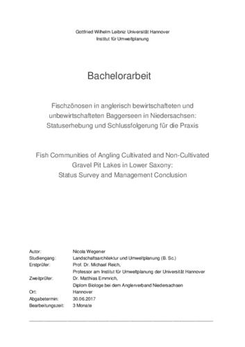 : Bachelor Thesis, Gottfried Wilhelm Leibniz Universität Hannover / Anglerverband Niedersachsen e.V. in Hannover