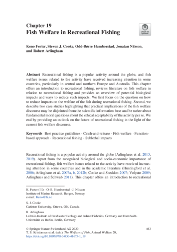 : Pages 463-485 In: T. S. Kristiansen et al. (eds.), The Welfare of Fish, Animal Welfare 20, Springer.