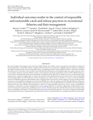 Cooke, S. J., Danylchuk, S. C., Tracey, S. R., Arlinghaus, R., Lennox, R. J., Brownscombe, J. W., Weir, A., Hinch, S. G., Patterson, D. A., Guckian, M. L., Danylchuk, A. J.