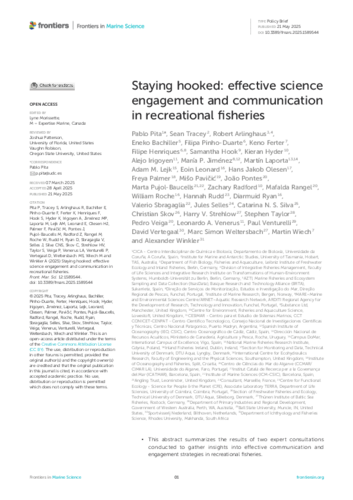 Pita, P., Tracey, S., Arlinghaus, R., Bachiller, E., Pinho-Duarte, F., Ferter, K., Henriques, F., Hook, S., Hyder, K., Irigoyen, A., Jiménez, M. P., Laporta, M., Lejk, A. M., Leonard, E., Olesen, H. J., Palmer, F., Pavičić, M., Pontes, J. et al.