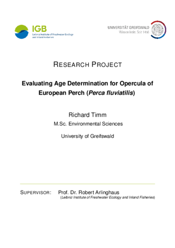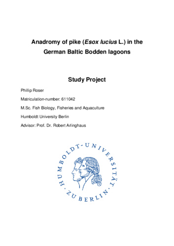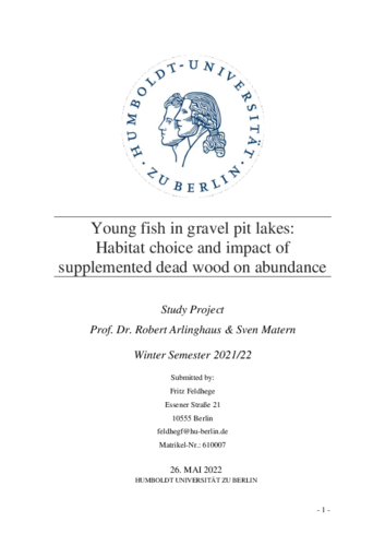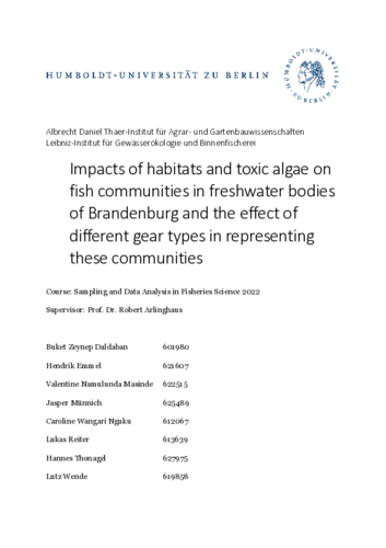 : Studienprojekt, Humboldt-Universität zu Berlin, Leibniz-Institut für Gewässerökologie und Binnenfischerei (IGB) Berlin
