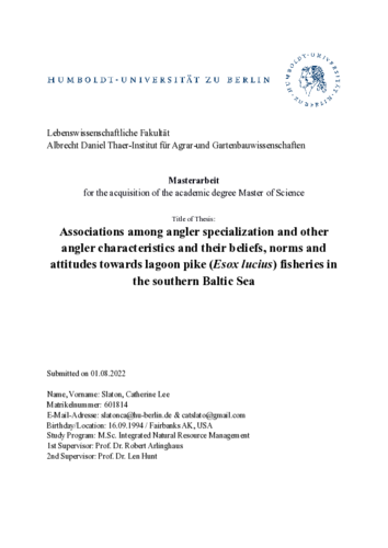 : Master-Thesis, Humboldt-Universität zu Berlin, Leibniz-Institut für Gewässerökologie und Binnenfischerei (IGB) Berlin